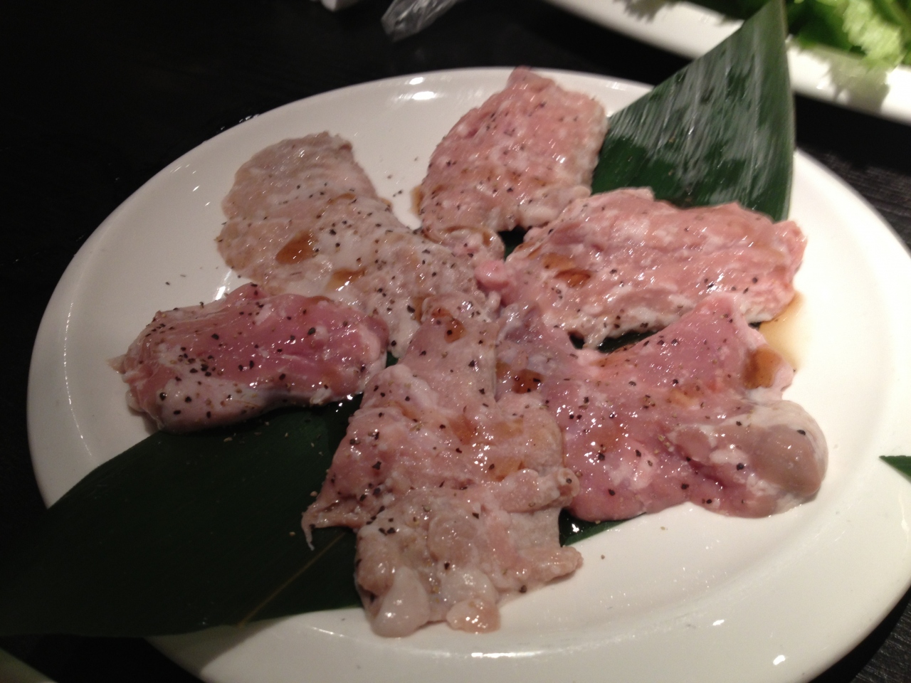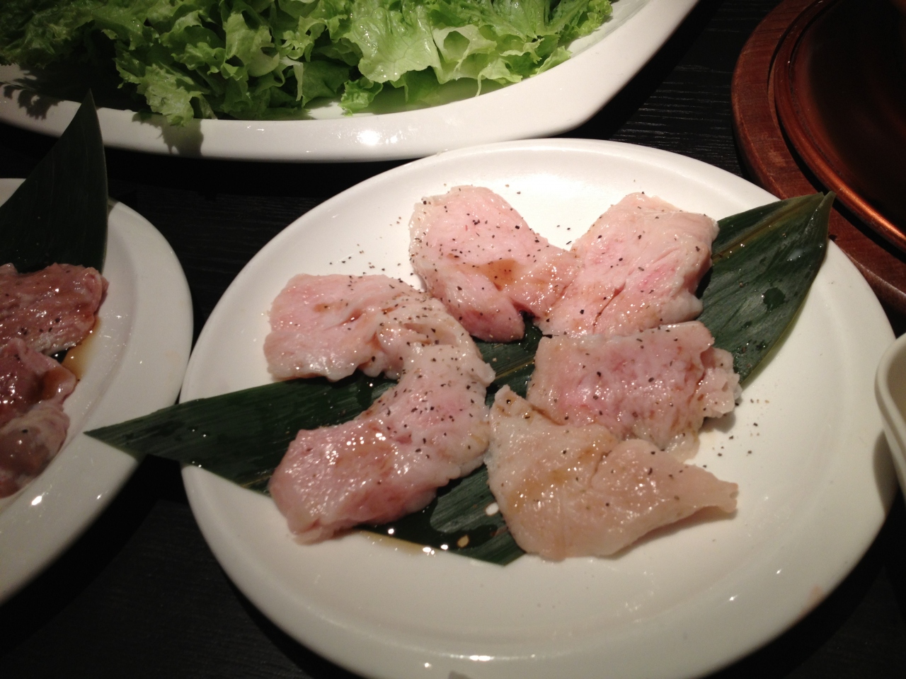 今回は二人でホルモン、レバー、シビレ(胸腺だったかな)、肝グレース、コプチャン、シロコロ、リブロースなどを注文しました。味付けに塩、たれ、味噌など選べます。これもすごーく迷います。どれもとても美味しくてビックリしました。リブロース以外はお値段もとても手頃で量も結構あります。