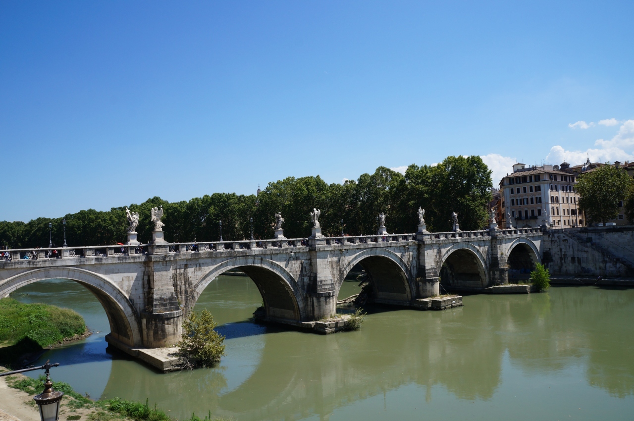 サンタンジェロ橋の下を流れる川。バチカンのメインロードをまっすぐ来ると出てきます。バチカンから来たので急に観光客が減った気がしました。この辺はバチカンやローマの中心部に比べると少し静かです。夜はライトアップもされています。