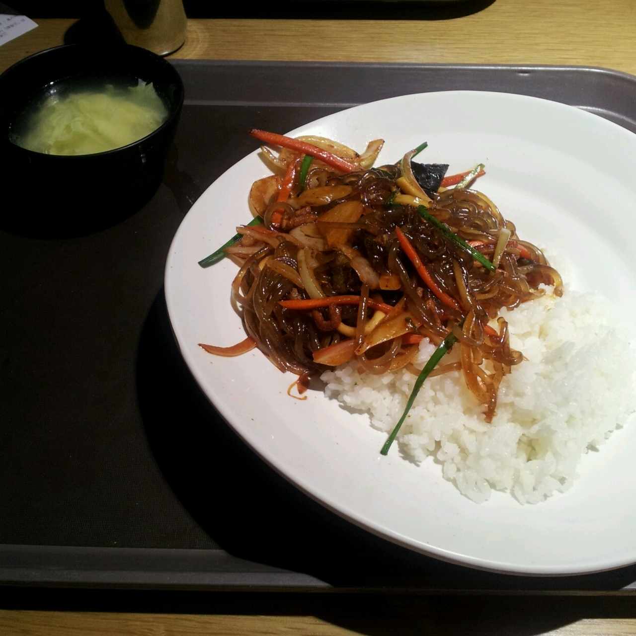 空港の地下にあります。先にレジで注文して、番号の書いたレシートをもらって好きな席に座ります。モニターに自分の番号が表示されたら、注文した料理を取りにいきます。トンカツなどの和食もありました。私はチャプチェ定食を注文してみました。8000ウォンでしたが、料理を見たら少し割高だなと感じました。味は辛かったですが、おいしかったです。キムチ、たくあん、黒豆はセルフで食べれました。