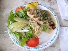 昔クア・アイナだった場所に出来て以来、人気のプレートランチのお店です。新鮮なお魚が食べられるので、お昼には売り切れなことも…この日ももうマヒマヒがなく、アヒステーキにしました。隣接する「ストロング・カレント」と同じ陽気なオーナーで、気さくに話しかけてくれますよ。シュリンプワゴン以外にもいかがですか?