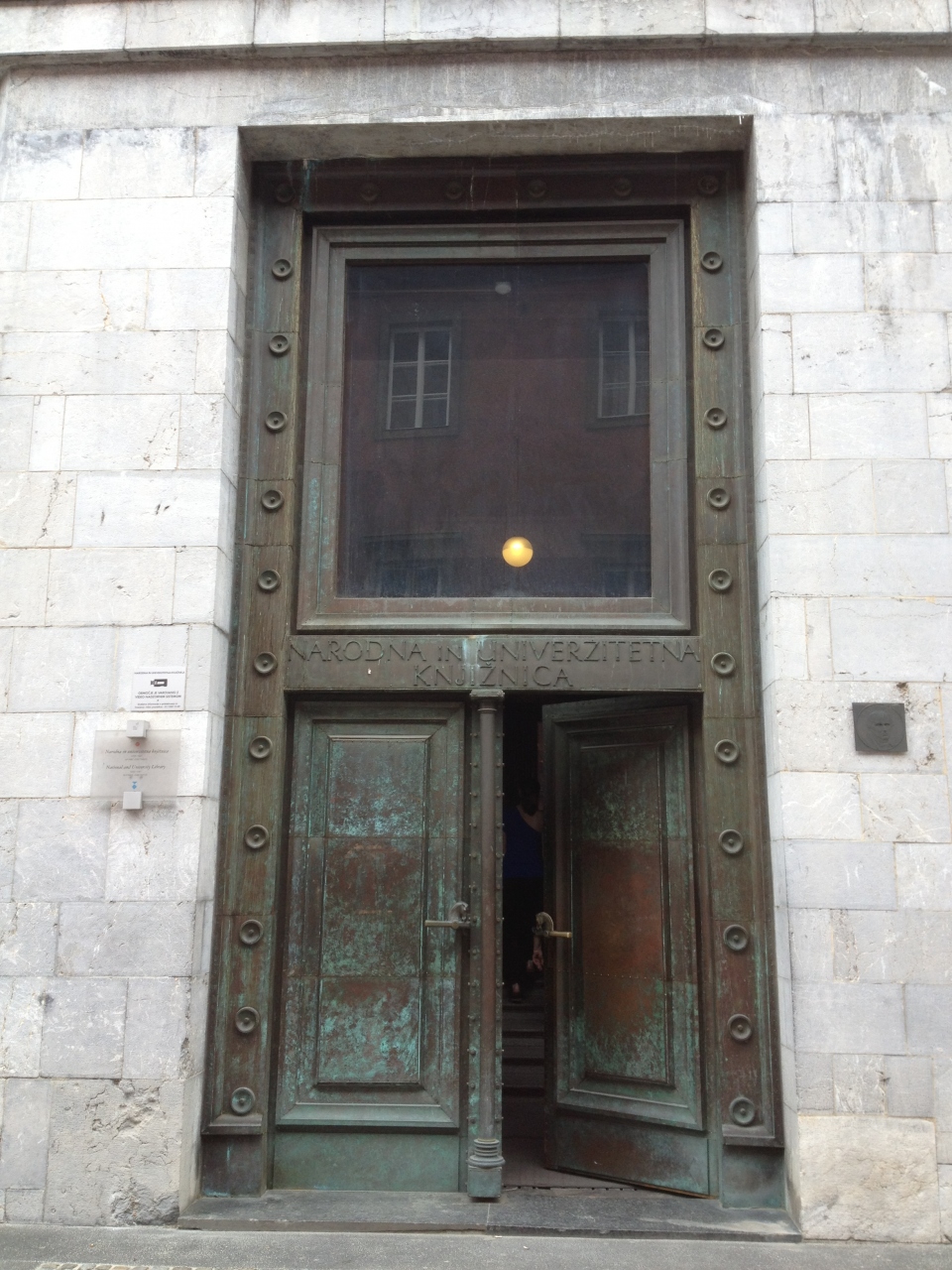 外観の模様も見ていて面白かったのですが、個人的には重厚な扉が印象的でした。また、図書館の中にも入れるかなと思いましたが、途中までは行けますが、図書館会員でないと、それ以降は行けませんでした。残念でした。