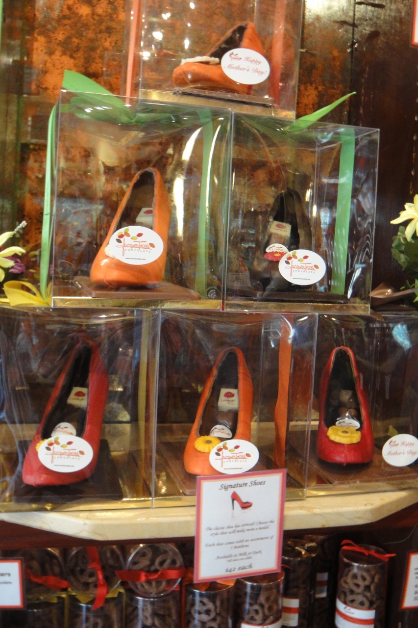ニューヨークの美味しいチョコレートの1つ、ジャックトレス。ロックフェラーセンターなどにお店があります。本店はブルックリンのダンボ。ブルックリンブリッジを渡る観光の際に立ち寄るのが効率的です。ちょうど母の日だったので、ハイヒールの形をしたチョコレートなどが売られていました。