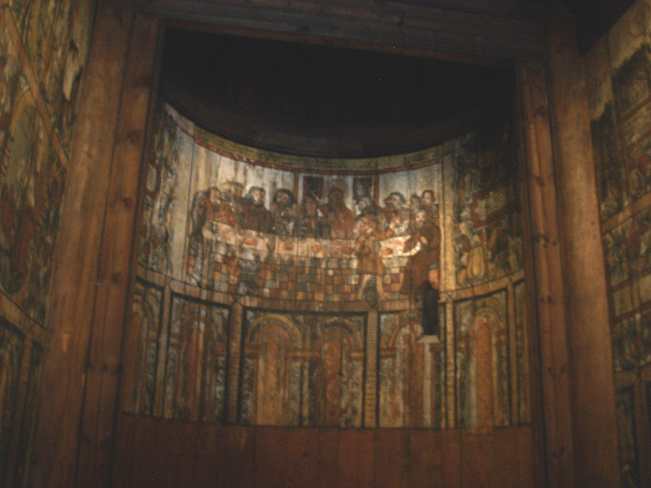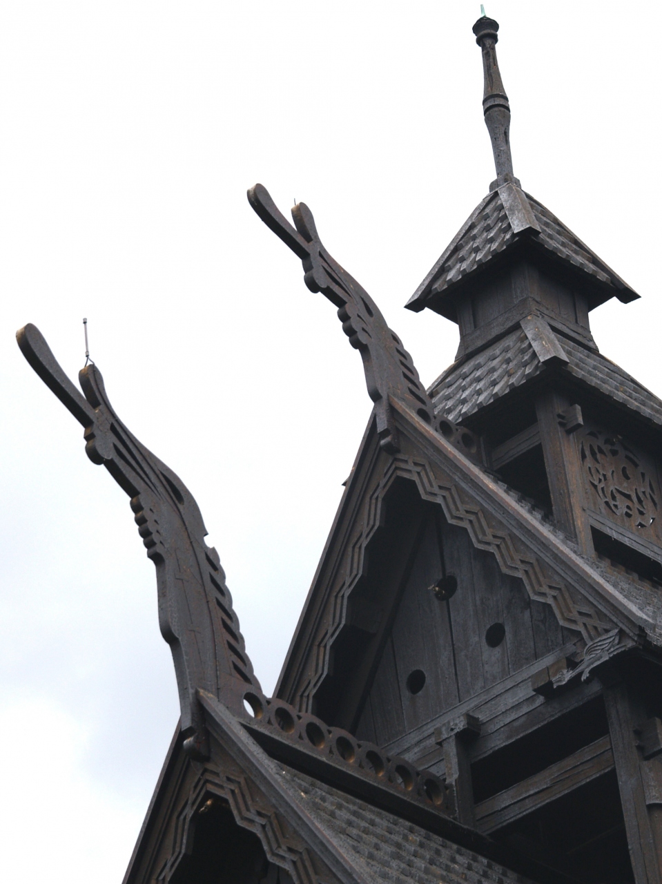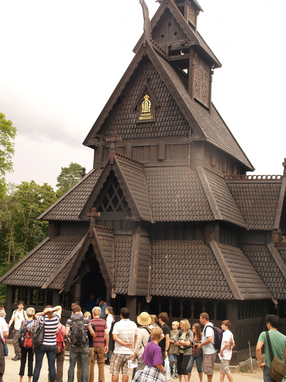 かつては、1000棟以上あったといわれるスターヴ教会。ここから200kmのゴール村から移築された教会。現在残存する28棟の一つである。バイキングスタイルと教会スタイルが混在した創生期のキリスト教会。元々バイキングは、土着宗教だったが、バイキングの被害に苦しむ西ヨーロッパの国々から宣教師が来て改宗させた。それ以降、盗賊業務はしなくなり、商業同盟の基礎を創った。