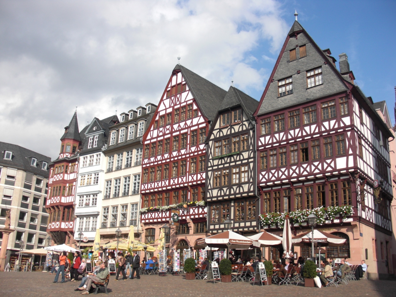ドイツらしい木の枠の建物がたくさん並ぶ広場です。