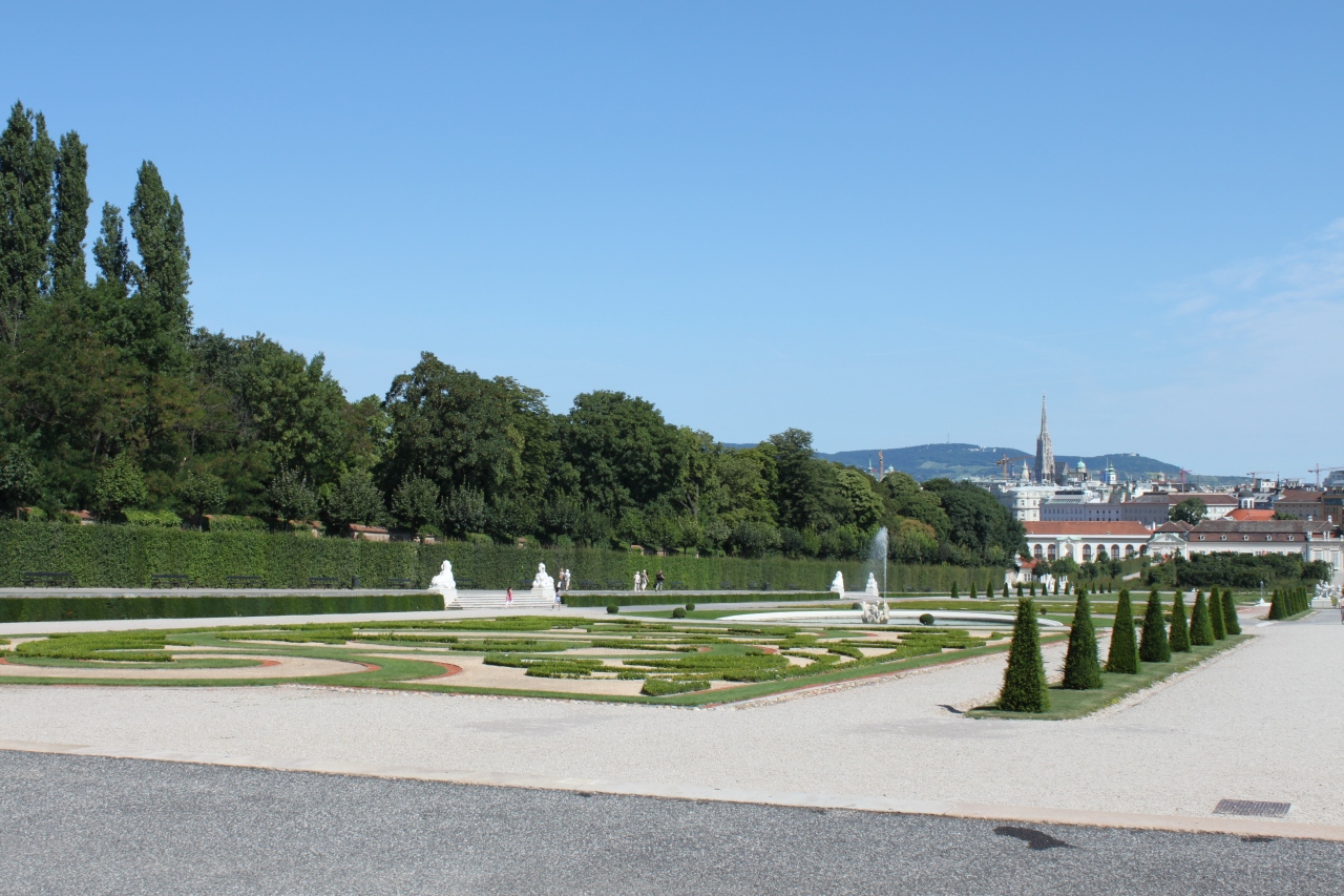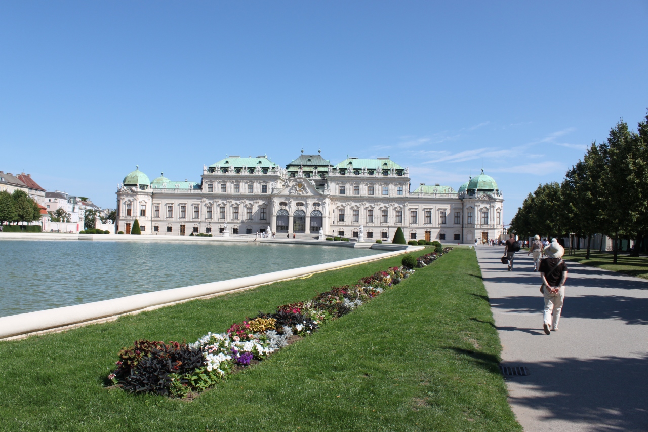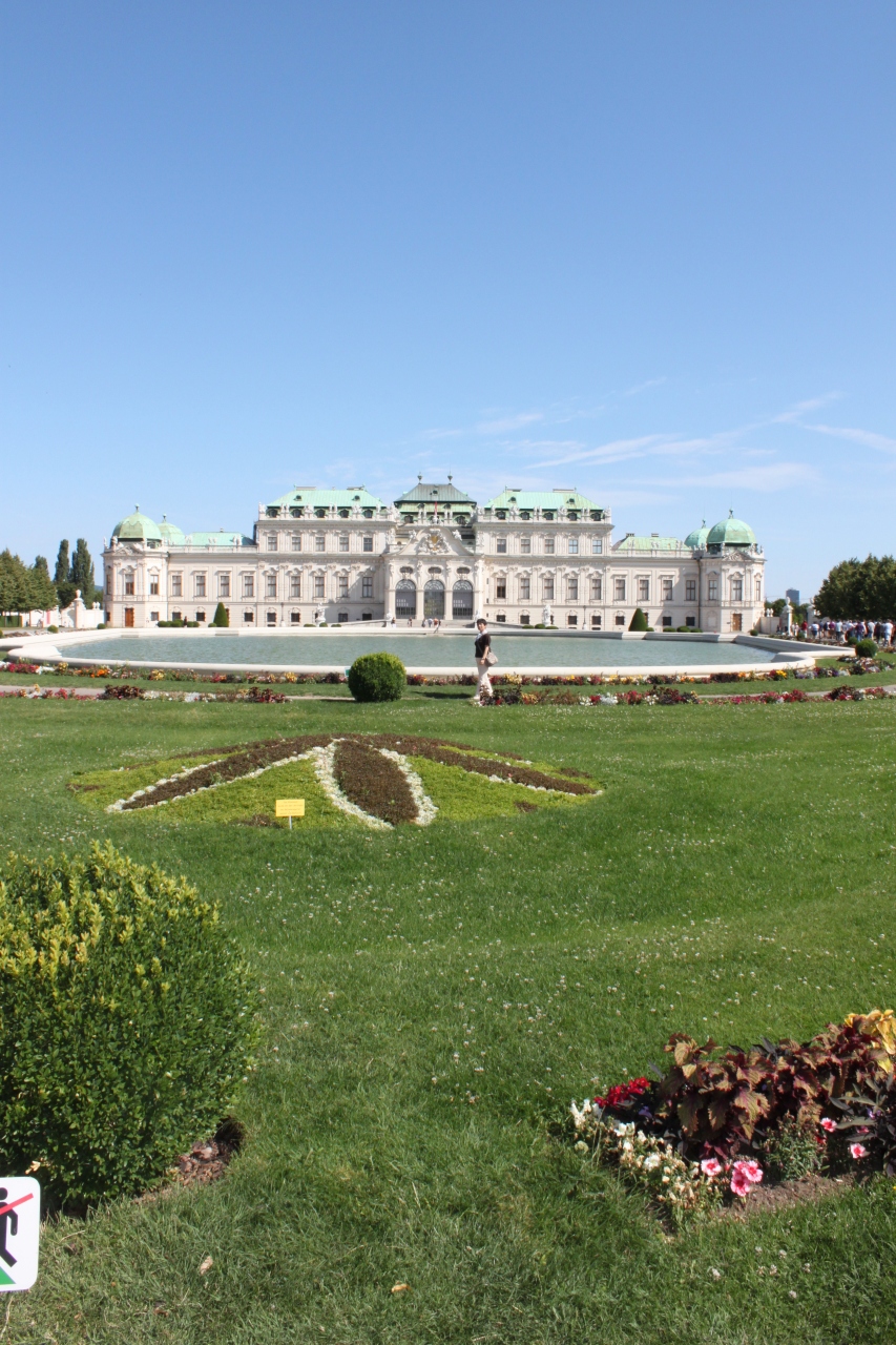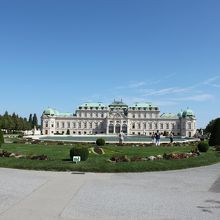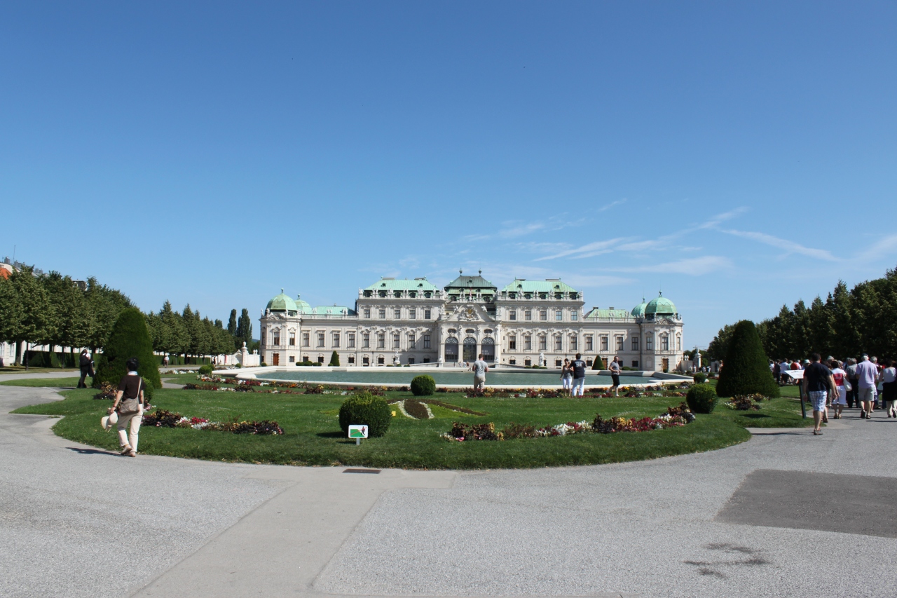 頃合いを見計らってチケット売り場に。入場券は11.5ユーロ。個人より団体客がもうかなり来ていた。ここには上宮と下宮があり、クリムトの作品などがあるのは上宮。