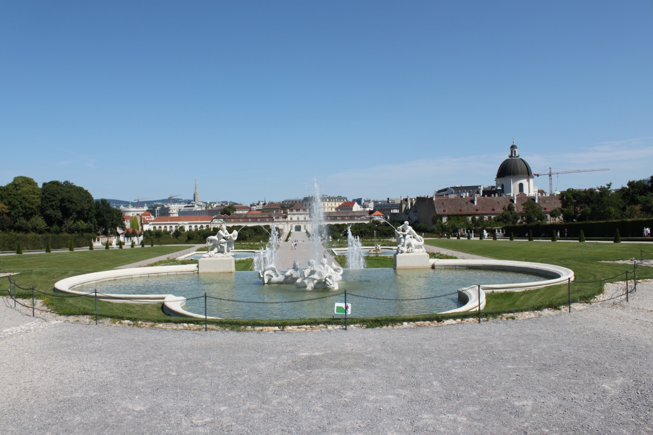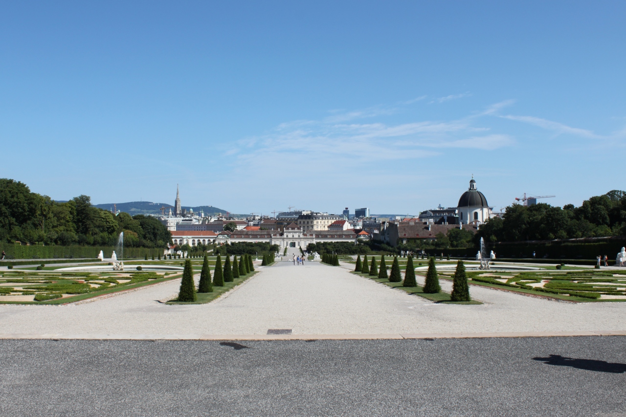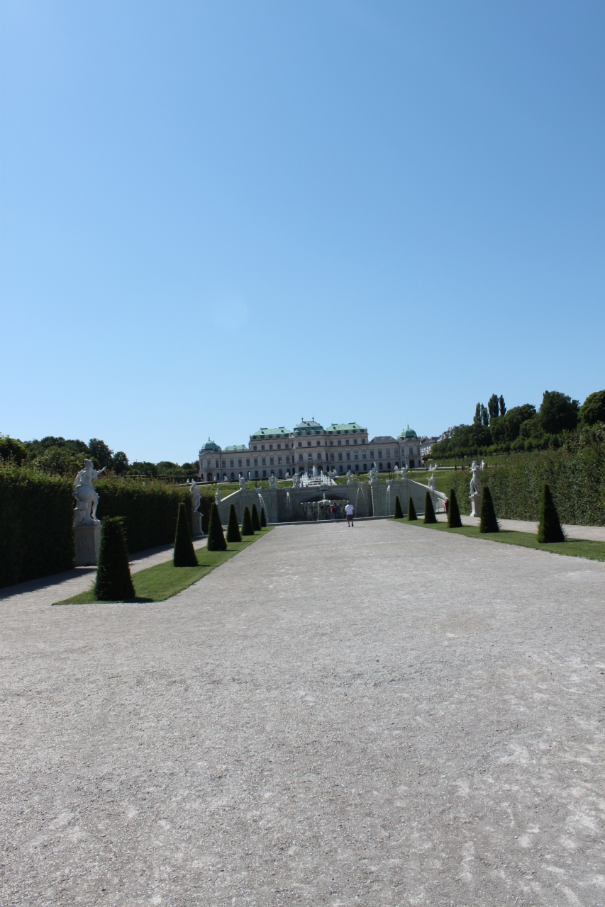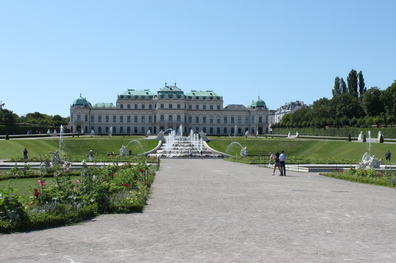 頃合いを見計らってチケット売り場に。入場券は11.5ユーロ。個人より団体客がもうかなり来ていた。ここには上宮と下宮があり、クリムトの作品などがあるのは上宮。