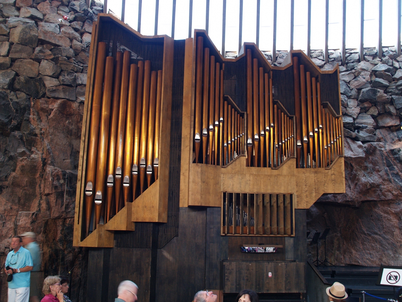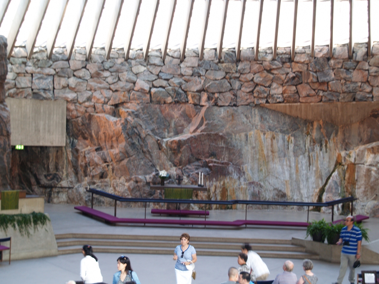 この周辺は、岩が多くある場所で、公園側(裏の方)に回ると岩が見られる。此の一部を掘って作られたのが解る。トラムの3Tで行けるのだが、丁度徒歩10分のアパートメントホテルにいたので、歩いて行った。10時前で下が30人ほどの観光客がいた。コーナーに伝導用のしおりが置かれていたので、記念に頂いた。フィンランド語版と英語版を頂いた。後ろの方のコナーに置かれている。そんなこともあって、献金をした。