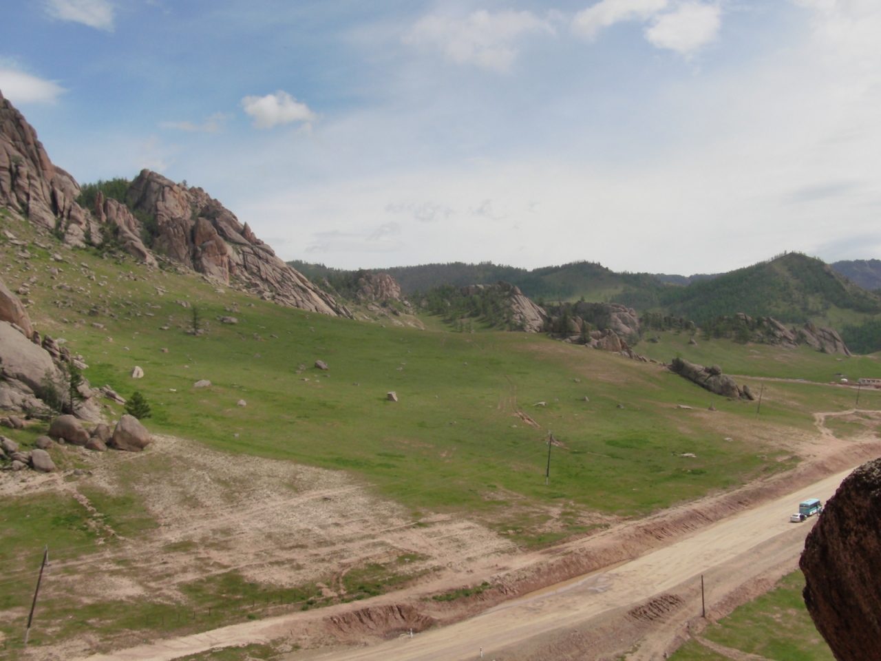 テレルジの草原は、起伏があり遠くに岩山も見えました。