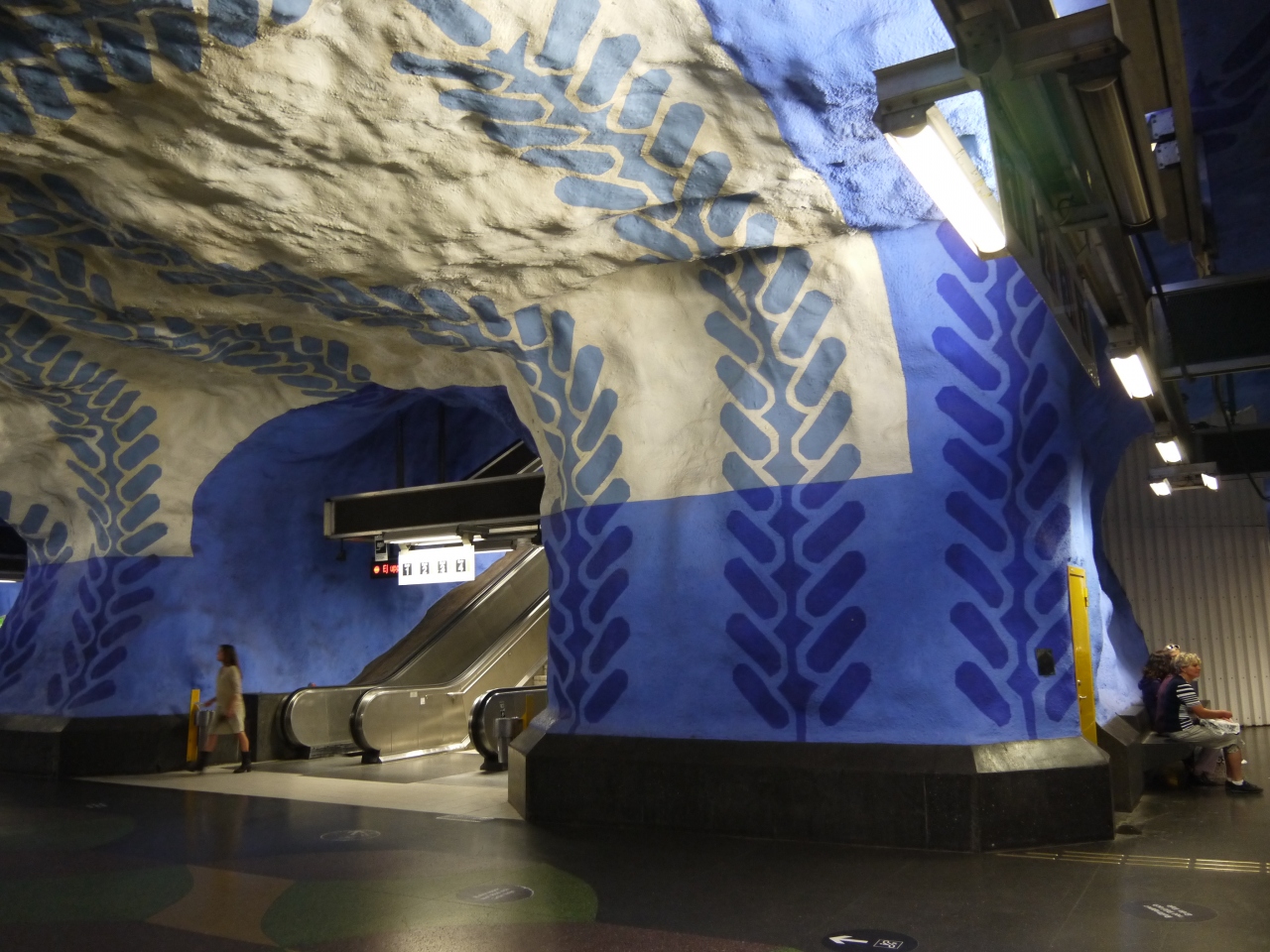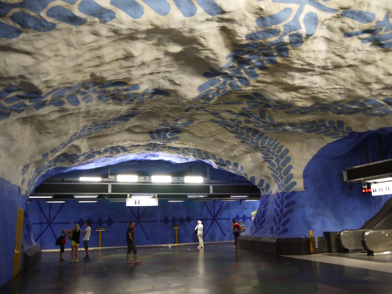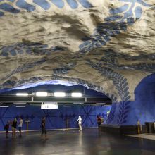 とにかく駅がユニークです。むき出しの岩盤に青や赤の色彩!天井に絵が描かれている駅もありました。