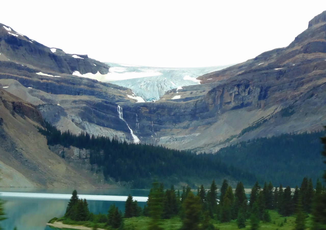 カナディアンロッキーの山々の間を縫って走るので、氷河や美しい氷河湖を車窓から見ながら走ることができます。