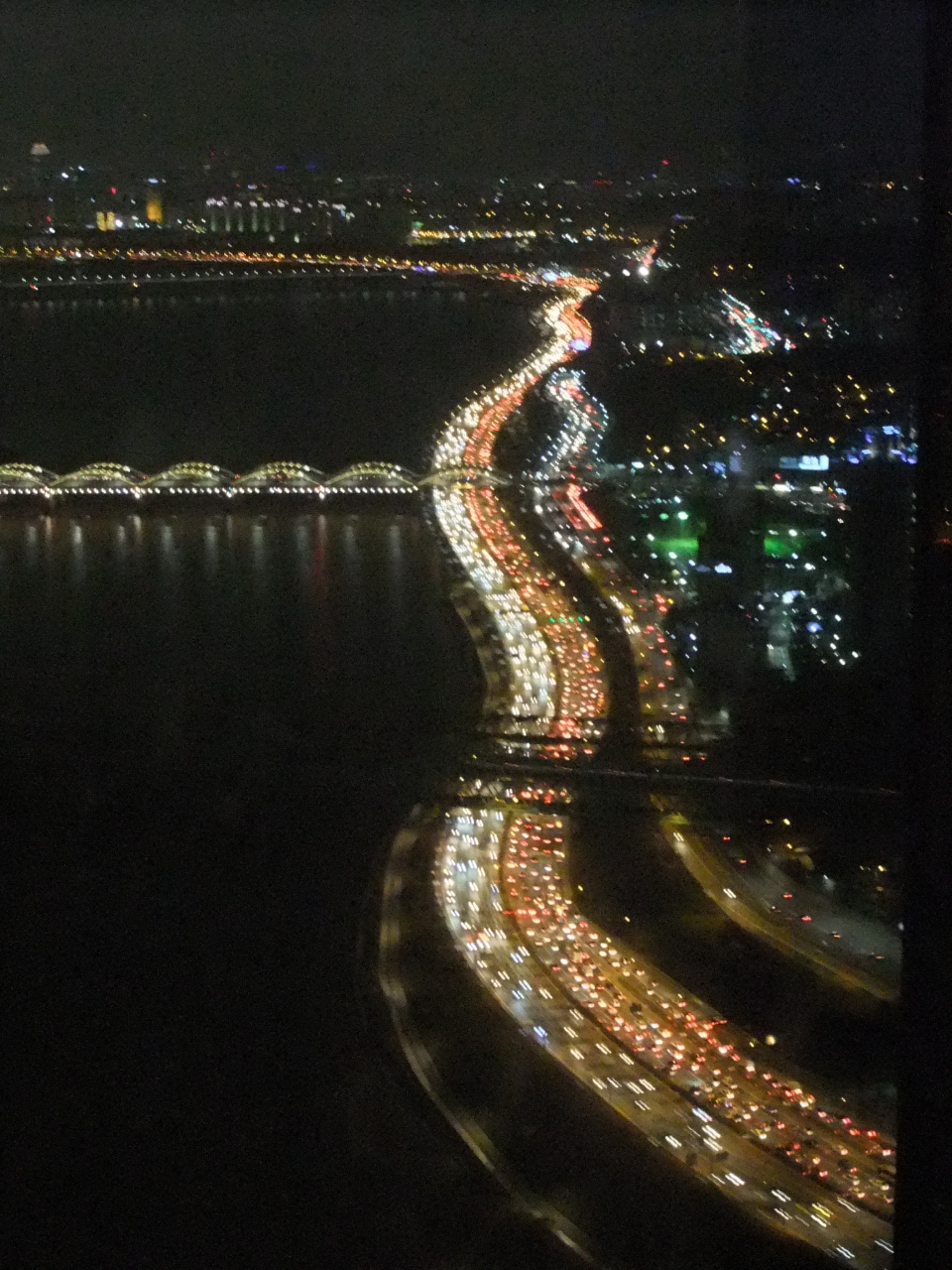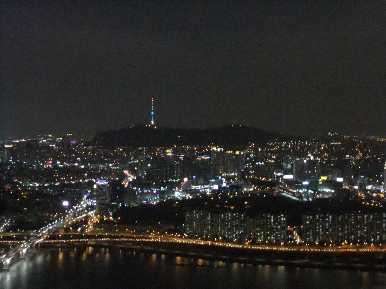 地下鉄5号線ヨイナル駅からシャトルバスに乗っていきました。南山タワーは何度も行きましたが、63ビルの展望台は初めて行きました。地下1階でチケットを購入して、地上60階へエレベータで上がりあっという間に到着しました。南山タワーが遠くに見え夜景がきれいでした。