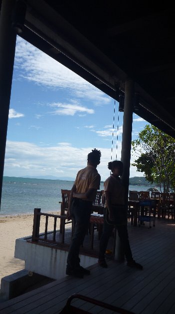 シーフードのメニューと中華のメニューとアジアのリゾートにある典型的なお店でしたが安くてとてもおいしかったです。店員さんもたくさんいますがとても親切でした。グァバスムージーはとってもおいしかったです。