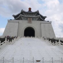 蒋介石のお墓です。 白い部分は全て大理石で建物の高さは70mと超巨大なものです。 エレベーターで上に上がると巨大な蒋介石像があります。 この像の見つめる先は帰りたかったのに帰れなかった中国なんだそうな。 そう思うとちょっと切ないものがありますね。 建物の大きな階段は89段あるのですがこれは蒋介石が亡くなった年と同じなんだそうです。