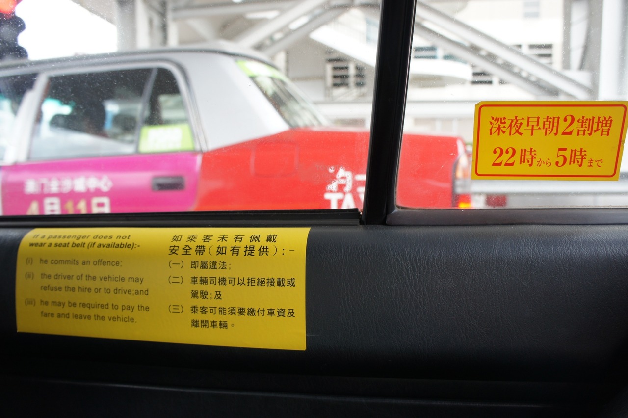 日本の中古タクシーをそのまま使っているようで、車内には日本でタクシーとして使われていた頃の日本語の文字がそのまま残っています。