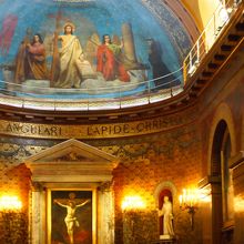 内部は金色のモザイクや明るい彩色のフレスコ画もあり