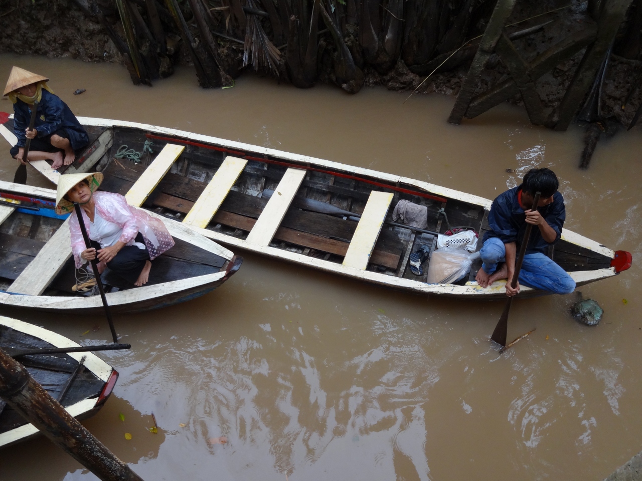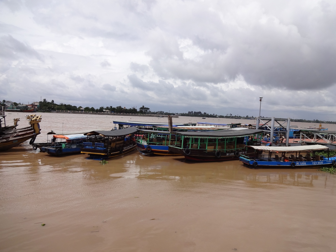 現地スケッチトラベルのツアーを日本で3日前位にネットから予約して行きました。シェラトンホテルでピックアップして貰い数か所回って22人のツアーでした。ガイドさんが言うにはお盆は最高に混んでいるので日本人が多いが普段は2~5人位で一人の時も有ると話してました。確か2人以上は料金同じだったと思います。同じツアーでも料金は色々なので調べて参加して下さい。ミトーのはちみつ工場やキャンディー工場は販売が目的な感じが有りありです。しかし、メコン川と中洲の小舟はスリル満点で参加して良かったです。船は木造だと思いますが左右均等に乗ってくださいと最初からドキドキ。途中で座席移動した人に動かないでと注意していた位にコーヒー色のメコン川に落ちるのかしらと思いました。小舟の方はもっと危なくて狭い水路は雨が止むと一斉に船が出るのでぶつかると冷や冷やです。ガイドさんが『浦安のジャングルクルーズと違って本物だから気を付けてね~』と言ってましたけど面白い体験でした。