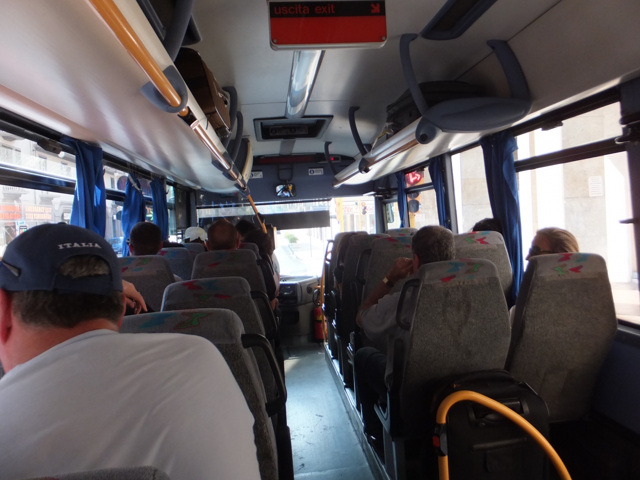 2日目はミノーリ→アマルフィへ移動。ミノーリ発10:30ぐらいに乗車。日本の朝の通勤ラッシュ並みに大混雑していました。やはり午前中はビーチや観光に出掛ける人で混んでいるようです。私が乗車した時はステップまでいっぱいで、運転手さんの真横で掴まる所もなく、運転手さんがカーブの度にミラーを確認する邪魔にならないように腰をかがめるのに必死でした。道も混んでいて通常15分のところ20分ぐらいかかりました。