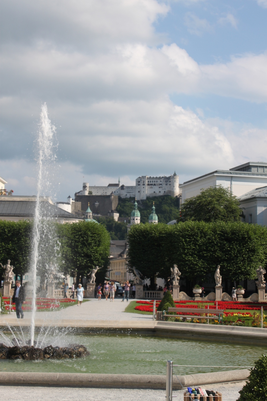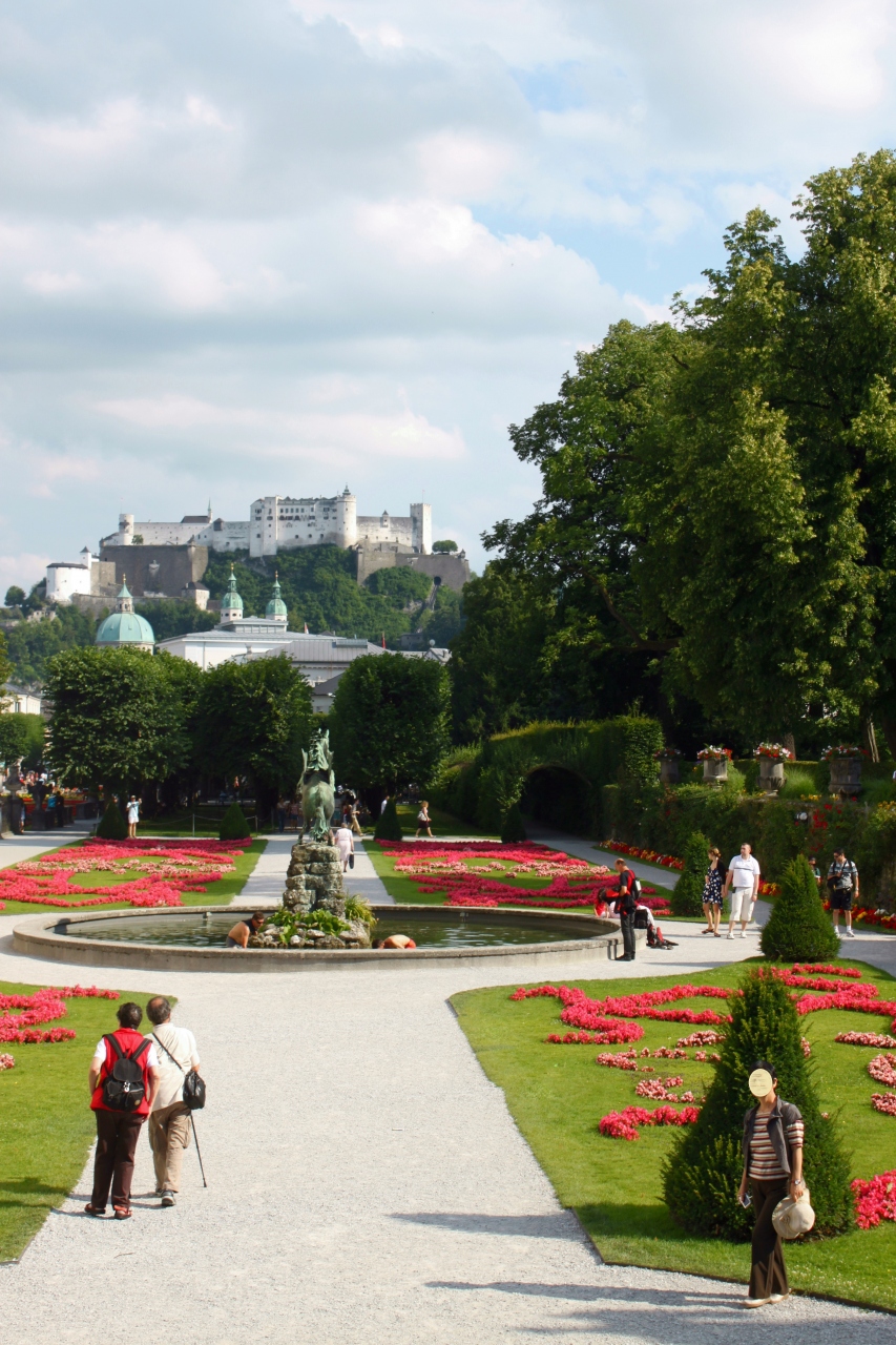 色とりどりの花が咲き乱れる宮殿の庭は「サウンド・オブ・ミュージック」ですっかり有名。映像に出てくる階段に上がってみると、正面に「ホーエンブルク城」の勇姿。空と花と城とが相まってとても心地よい風景。長く気持ちに残る景色だ。