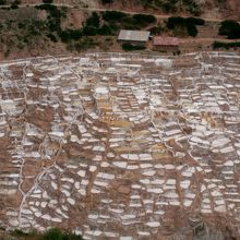 クスコの町から北へ約50kmのマラスの町から約10kmほど奥まったところにインカ時代から続く塩田があります。岩間から流れ出る高濃度の食塩泉を渓谷の斜面に作った塩田に引き込み、天日干しで塩を作っています。アンデス地域にある唯一の塩田で、インカ時代は国によって管理され、国内に配分されていたそうです。