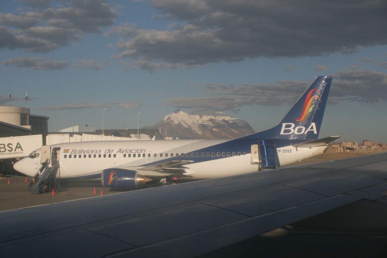 超高地のため、滑走路は4、000mの長さがあります。南米ではペルーのフリアカ空港に次いだ長さだったのですが、最近、エクアドルの新キト空港が出来て2番目となったので、3番目の長さです。この標高では、滑走路の長さがあっても燃料を満載しての離陸が出来ないので、長距離国際便はすべて近くの標高の低い空港の経由便となります。