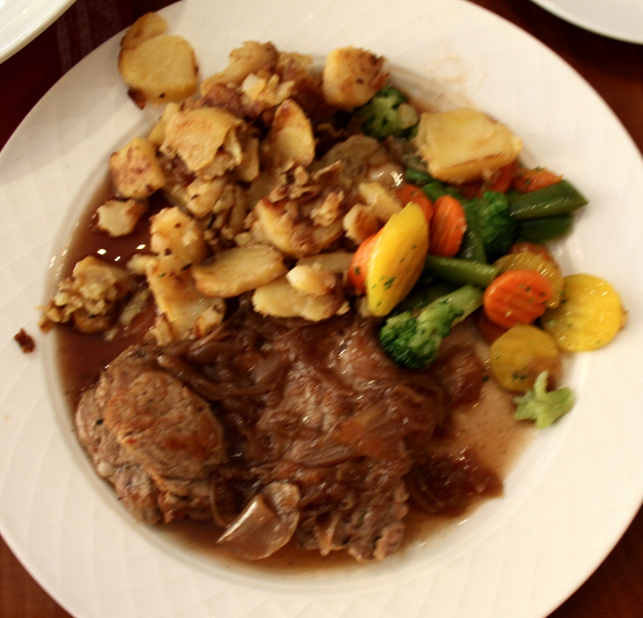 どこの店でも、その日の定食がある。地元の人たちも大勢テーブルを囲んでいる。品書きを見ても、ドイツ語は読めない。当番のウエートレスは英語はダメ。それでも、食べている人の料理を指さしたりすれば、おおむね食べたい品の注文はできる。