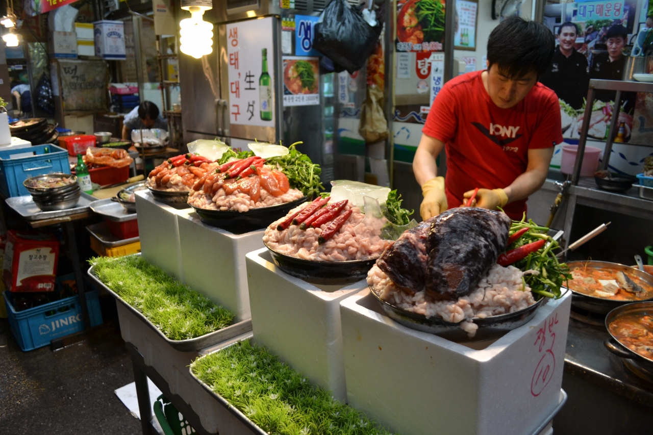 ケジャンやチャンジャなどの名店、洪林さんもこの市場のメインストリートにあります。