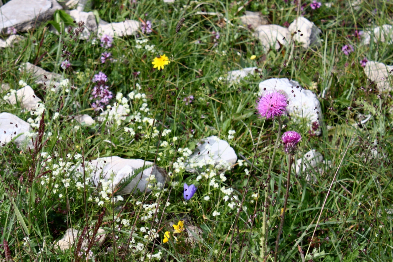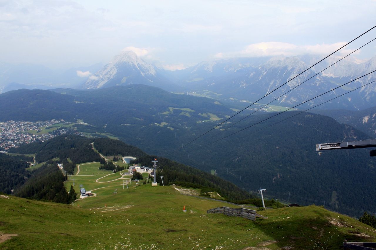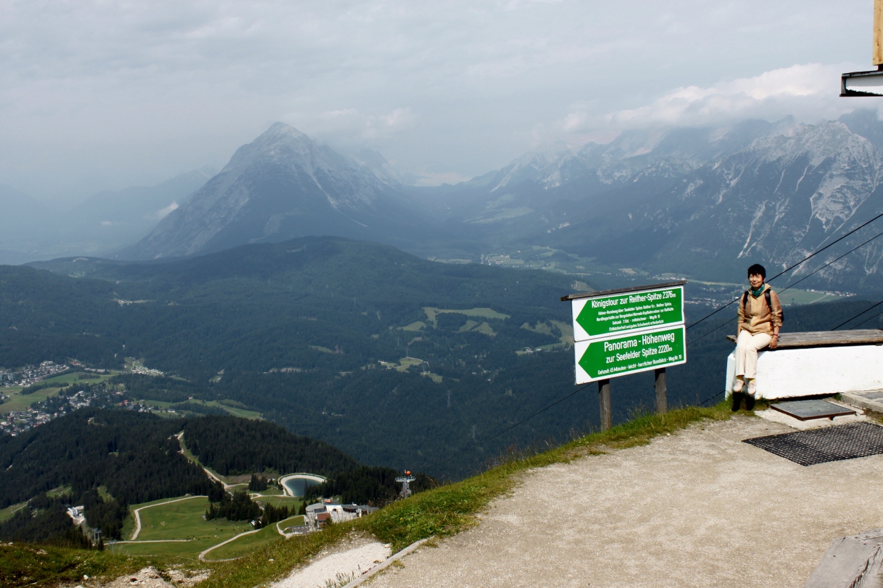 インスブルックから電車で36分のゼーフェルト(標高1180?の美しい高原リゾート地)。そこから歩くこと約20分、ケーブルカーとロープウェーがあわせて35分ほど。順調にいけば1時間半(待ち合わせがうまくいった場合)くらいでこの山頂駅に着く。降りると近くに小さな展望台。ここからはアルプスの山並みが迫ってくる。スイスアルプスのように4000メートル級というわけではないので雪をかぶった姿では無く、荒々しい感じ。でも愛らしいチロルの花々が出迎えてくれ、気持ちの良いミニハイキングになった。インスブルックだけだと少し物足りない気がしていたので、ここに来たことはとても満足した。街歩きと山のハイキング、とてもおすすめ。
