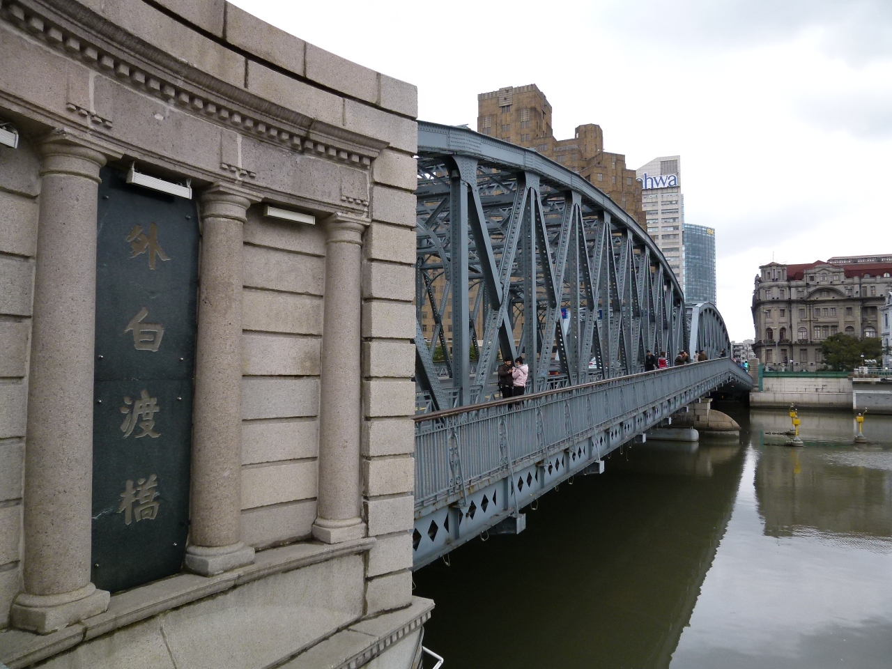 上海外灘沿いの建造物を鑑賞しながら人民英雄記念塔の方へ歩いていくと外白渡橋(ワイバイドゥウチャオ)があります。この橋は鉄橋で蘇州河に架かっています。外城渡橋の袂から対岸の反対側には濱江大道や東方明珠電視塔や上海環球金融中心など大パノラマがご覧いただけます。またこの橋の特徴は橋の中央が少し小高くなっていて、行き交う船が通れるようになっているようです。