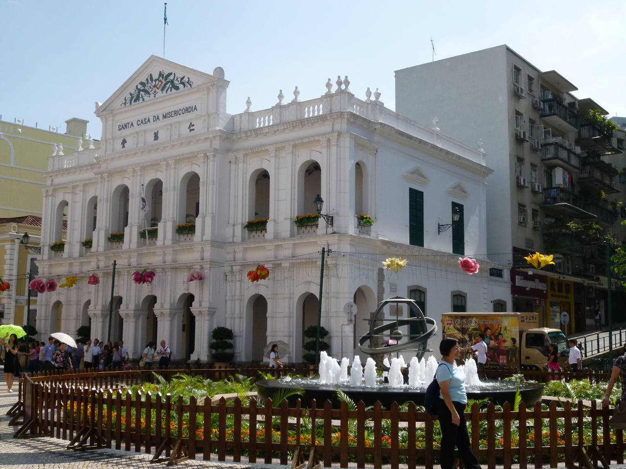 セナド広場に白亜の西洋建築の建物に石畳が引き立ちますね。大きな字でSANT CASA DA MISERICORDIA 、その下に仁慈堂と書かれていて、旗が掲げられていました。この仁慈堂も世界遺産です。建物の右手側から2階に通じる階段があります。2階は博物館になっていて宗教的な調度品が展示されています。お見逃しなく・・・。