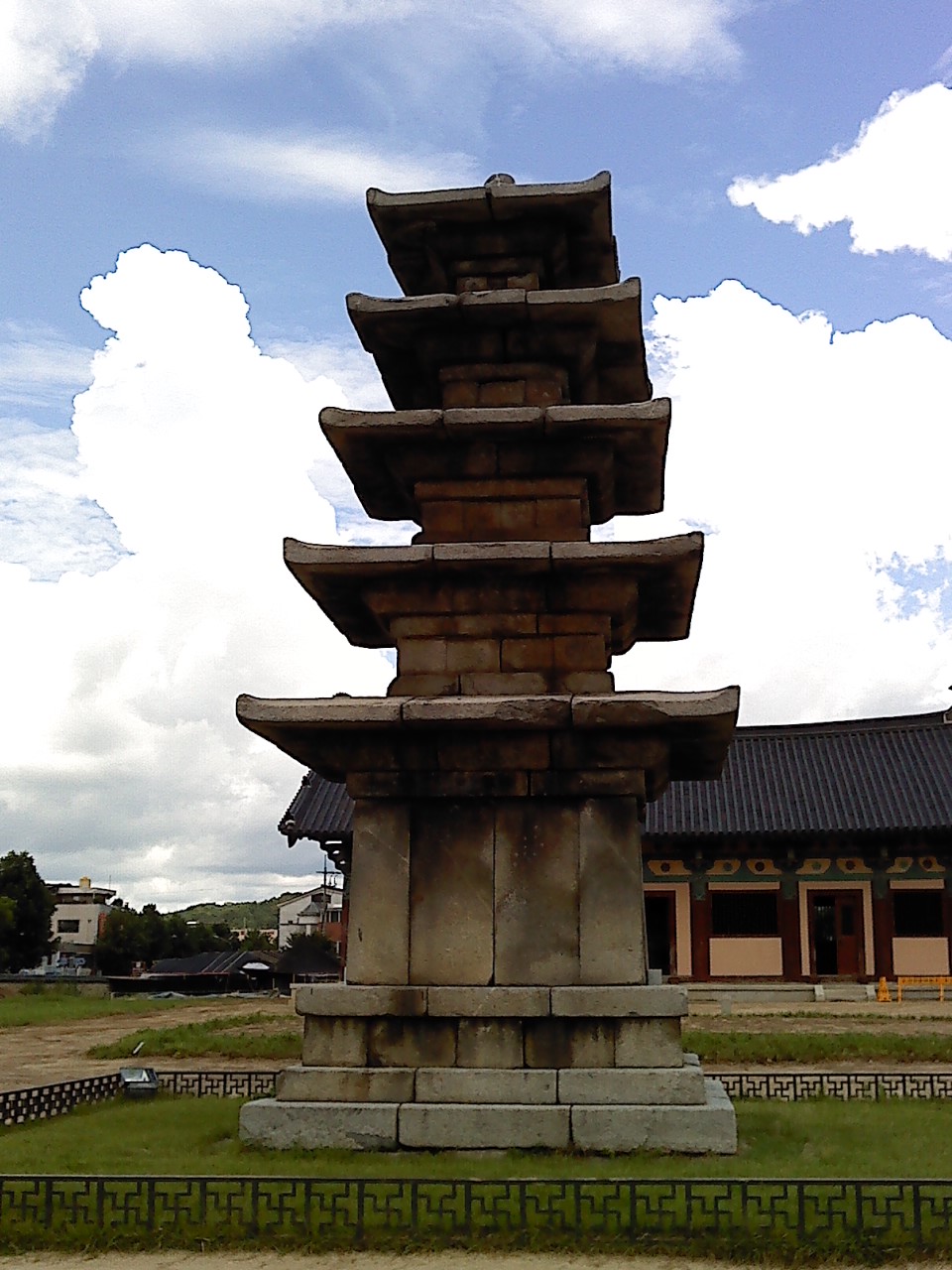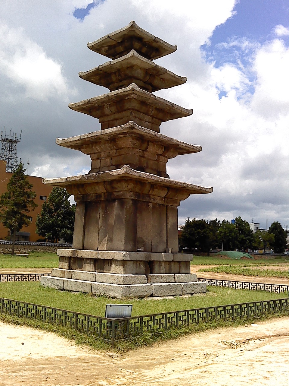 この石の塔は昔のまま残っている塔です。定林寺の建物は残っておらず、復元中でしたが、この石の五十の塔は健在です。