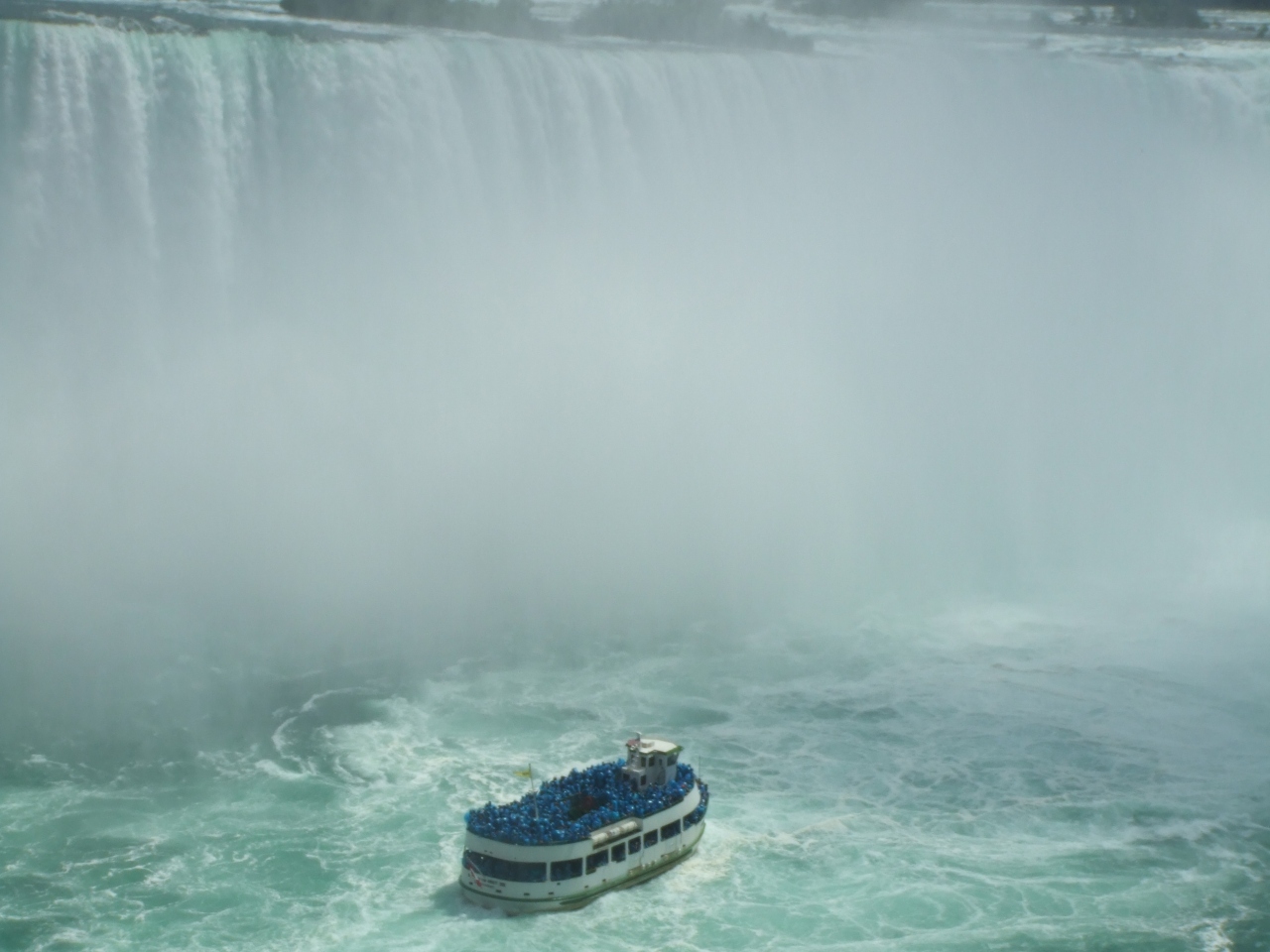 一番簡単にナイアガラの滝を見るのは、カジノバスといわれてます。それに乗り、カジノから急勾配の坂道を降りるとすぐにいけますが、この乙女号に乗るには、そこからボートのあるところまでの道と、更に滝の高さ分下ってボート乗船場までくだらなければなりません。結構大変です。