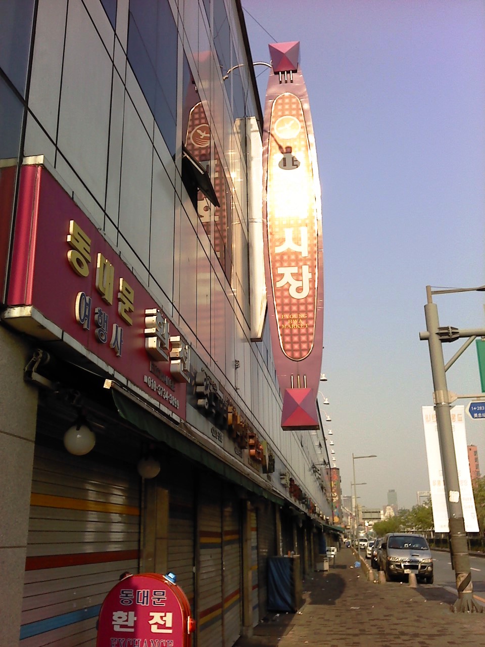 昔ながらのごみごみしたところで、発展した東大門市場のファッションビル街とはちがいます。露店の店が並び、会話をして商品を買うところです。プライスタグなどなく、雰囲気を楽しめます。屋台の食べ物屋さんでおやつを食べながら歩くのが楽しいです。