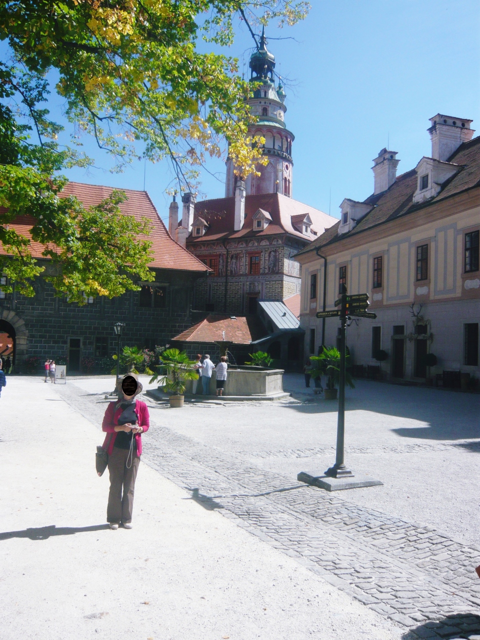 ツアーでこの街に来て、60代の3人組で塔に登った。塔の料金は50コロネ(約300円)階段は狭くて暗いので慎重に。でも上がった甲斐は充分あった。絶景!!