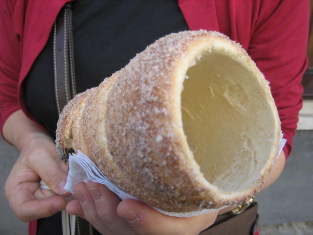 また街歩きをすれば、可愛いお店やレストランにも出会える。ここの有名な「ツゥルドロ」も食べてみた。パンとクッキーの中間のようなふわふわしたお菓子。太いちくわのような形をしているのを友人達と分け合って食べたのも良い想い出。