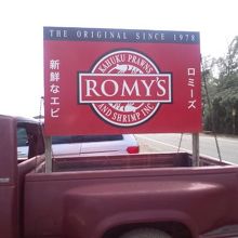 ノースショアのカフク地区にあります。なにもない道路に大きな看板を掲げていますので、すぐに見つかります。レンタカーがないといけないですが、簡単です。