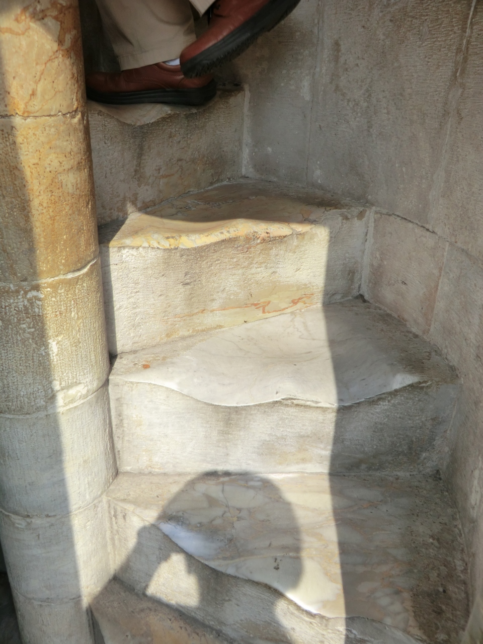 チケットを購入して、決まった時間に登ることができます。通路は狭く、ぐるぐる回っている上に、傾いていて、とでも登りづらいです。しかも、階段の大理石はこれまでに登った人たちの足で擦れて、かなり窪んでいます。