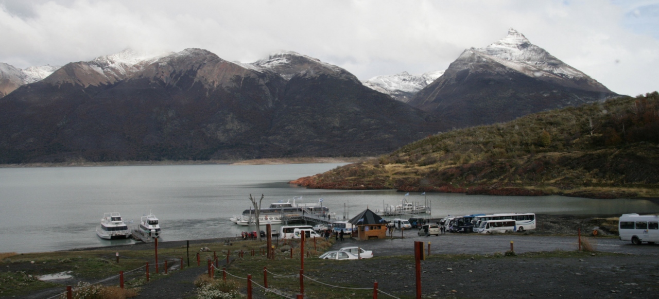 ペリトモレノ氷河観光のビジターセンターから5分くらい戻ったところから、リコ入り江の湖畔に下ったところにあります。この港からは氷河クルーズの船が出港しますが、氷河トレッキングをするお客さんを対岸まで運ぶ船もここから出港しています。