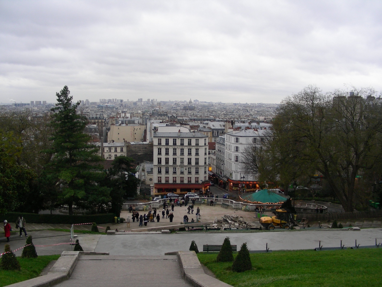 モンマルトルの丘は狭く急な坂道、ぎっしり並んだ路上駐車の列、落書きのされた安アパート、と「芸術家のタマゴのたまり場」のイメージそのままの風景です。似てもいない似顔絵描き、銅像そっくりの路上パフォーマーなど、くだけたパリの一面を見ることができます。体格のいい黒人のニイちゃんが親しげに「友情のしるし」とミサンガをつけようとするのには要注意。突然30ユーロ要求してきます。警官も見て見ぬふり。日本語でいいからきっぱり断る勇気が大切です。