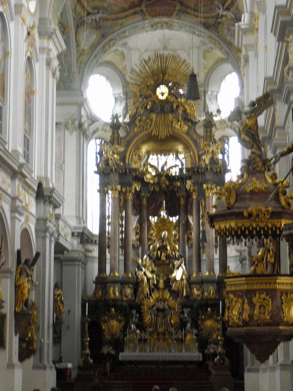 外観は比較的シンプルな感じ?なのに対し、内部の祭壇は、アザムによるもので、バロック式の優美さがある。