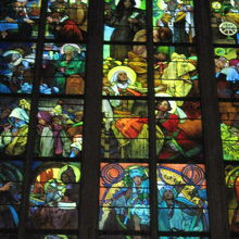内部のステンドグラスも見事で、特にミシャのものが印象深い。