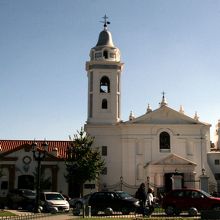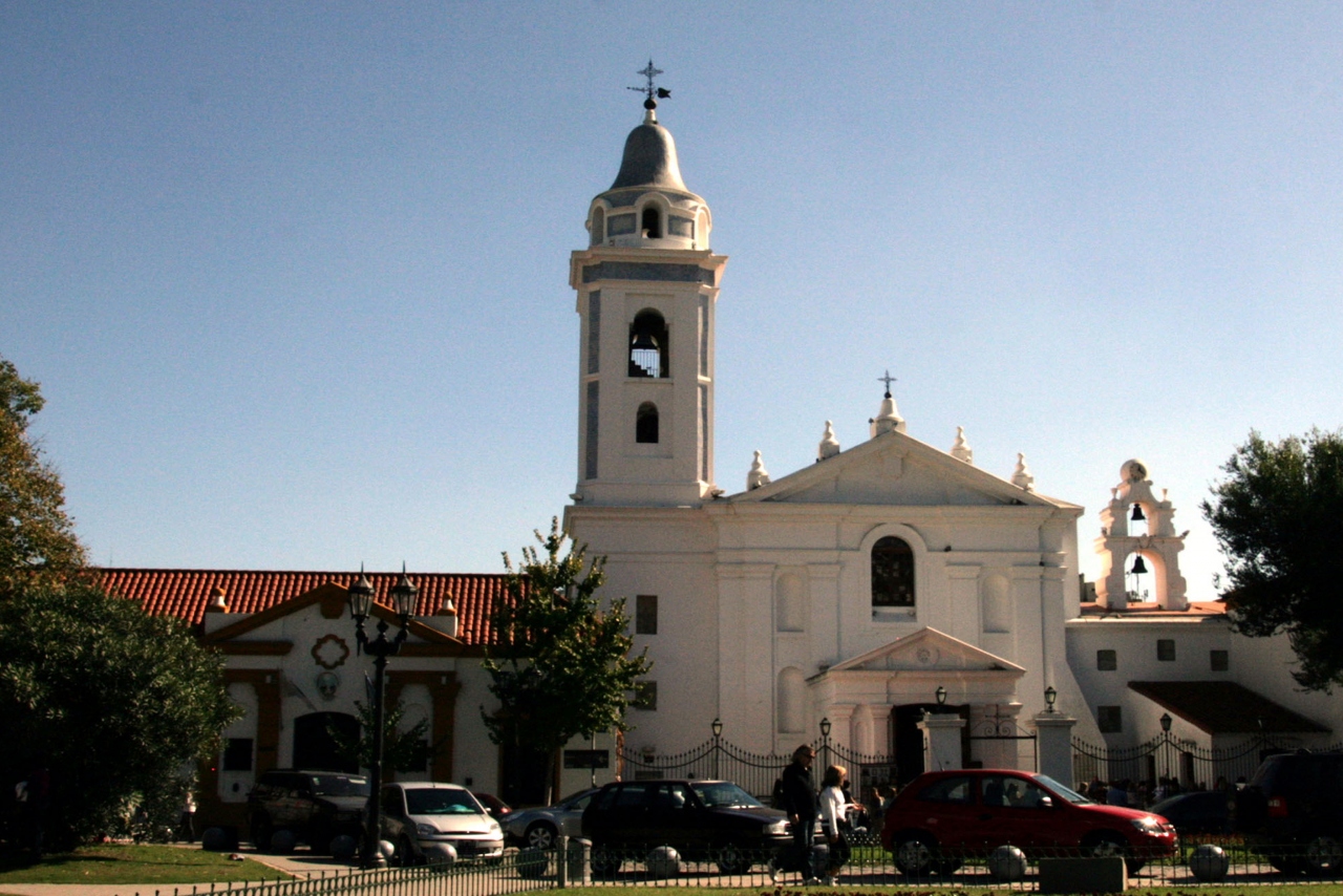 聖母ピラール聖堂は、レコレータ墓地の南東角、「市長トルクアート•デ•アルベア広場」に面してあります。建物は白い壁に赤い屋根、鐘楼は白地に水色と、色彩が上手に使い分けられています。完成は1732年と古く、ブエノス・アイレスでは2番目?に古い教会の様です。