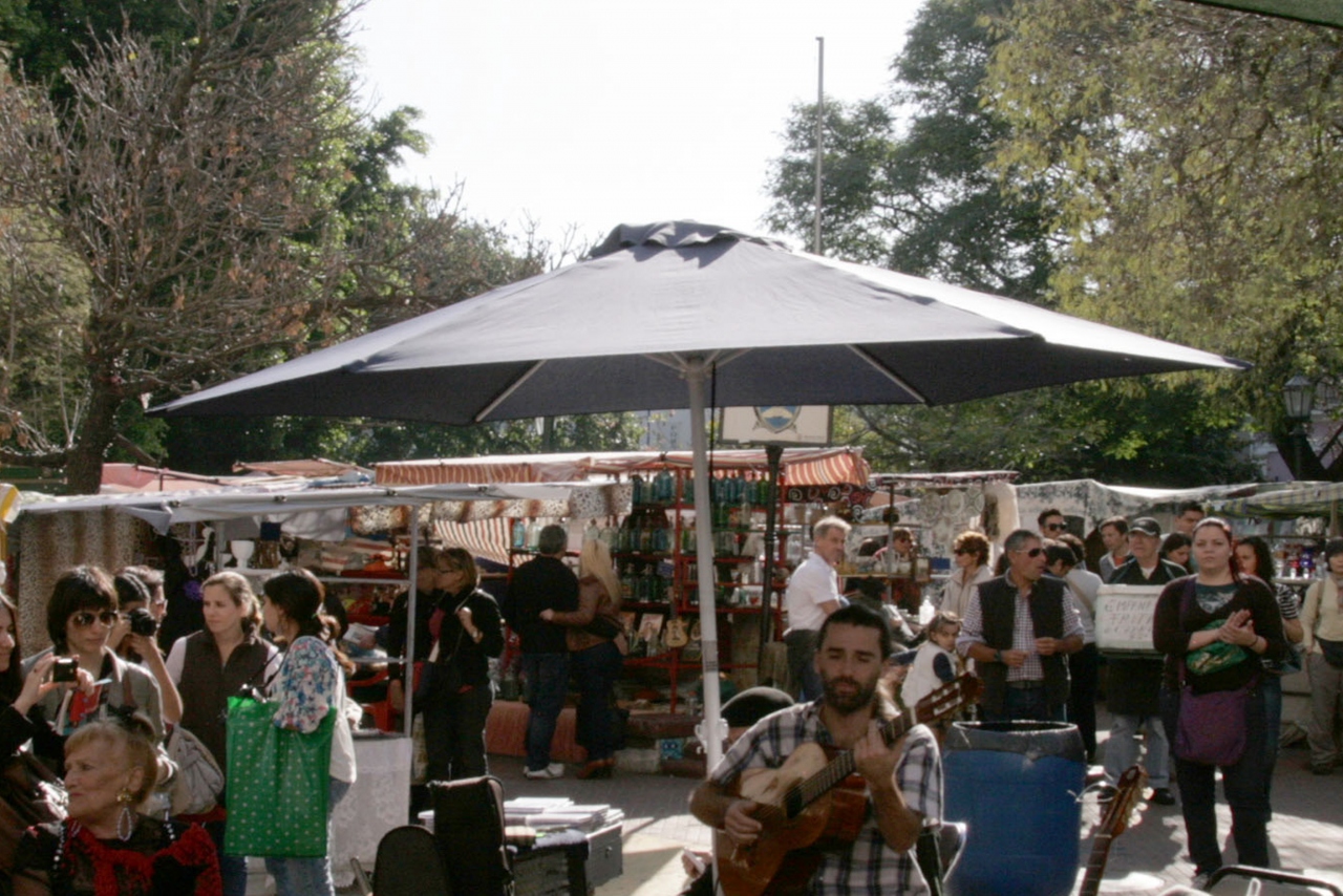 ドレーゴ広場のあるサン・テルモ地区はブエノス・アイレスの歴史を刻んできた様な地域で、現在は東京で云えば浅草の様なところでしょうか。毎週日曜日に開催されるサン・テルモ・フェリアと呼ばれる骨董品市はこの広場を中心に開催されています。その日曜日には骨董品市だけでなく、タンゴのストリート・ダンスや音楽や歌の路上ライブなども行われ、大変な賑わいです。