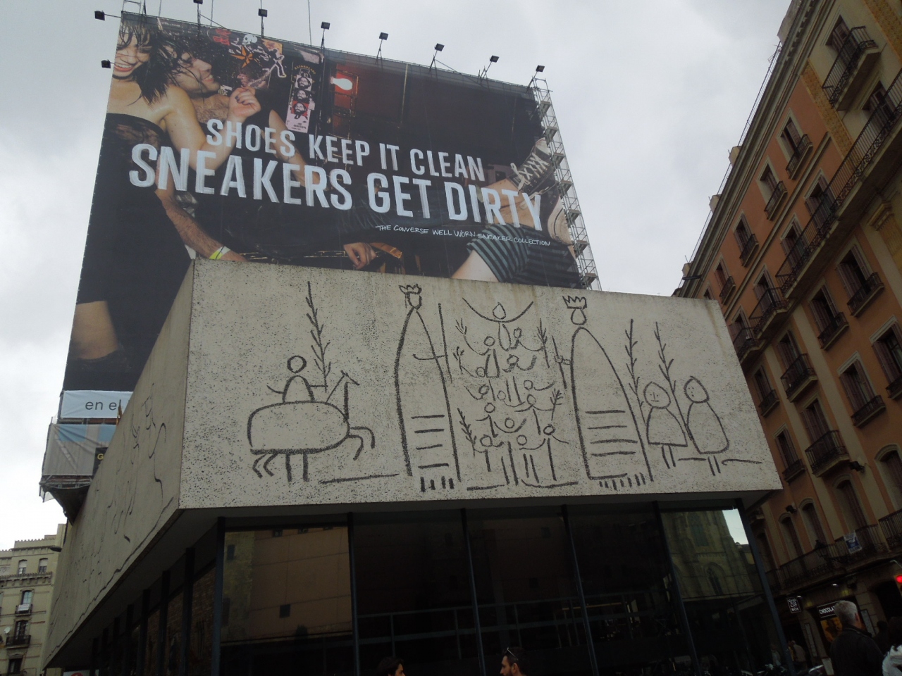 人気スポットカテドラル前の建物にピカソの壁画を見ることができます。