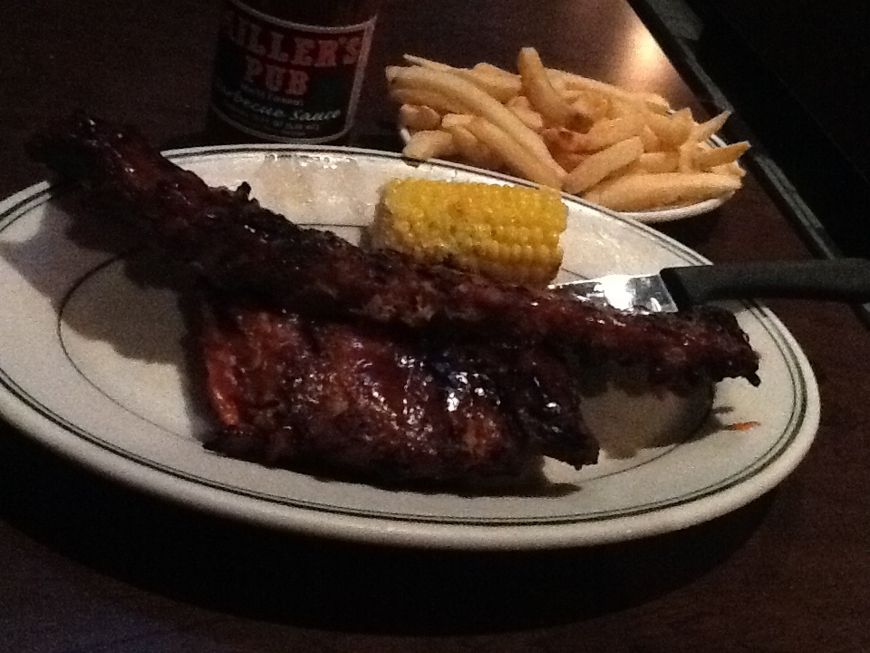 CTAでオヘア空港からループ地区に着いたのですが、この日は大雨で観光も出来ず、友人が来るのにまだ時間があったので、地球の歩き方やfor travelにも載っているミラーズパブに入りました。日曜日の昼間11時頃で雨の日だったので、観光客が沢山居て順番を待っていたのですが、私は一人だったのですぐに席に通してもらえました。混雑していたせいなのか、ウェイトレスさんの機嫌が悪かったのですが、流石に色々な雑誌に載っているだけあってスペアリブも大きくて美味しく、フレンチフライの量が一人じゃ食べ切れない程でした。ガーリックラスクが凄く美味しかったです。