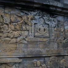 シンガポールのラッフルズに19世紀初めに発見されるまで密林に埋もれていたのが、ボロブドゥール遺跡。