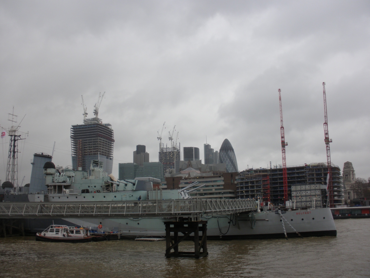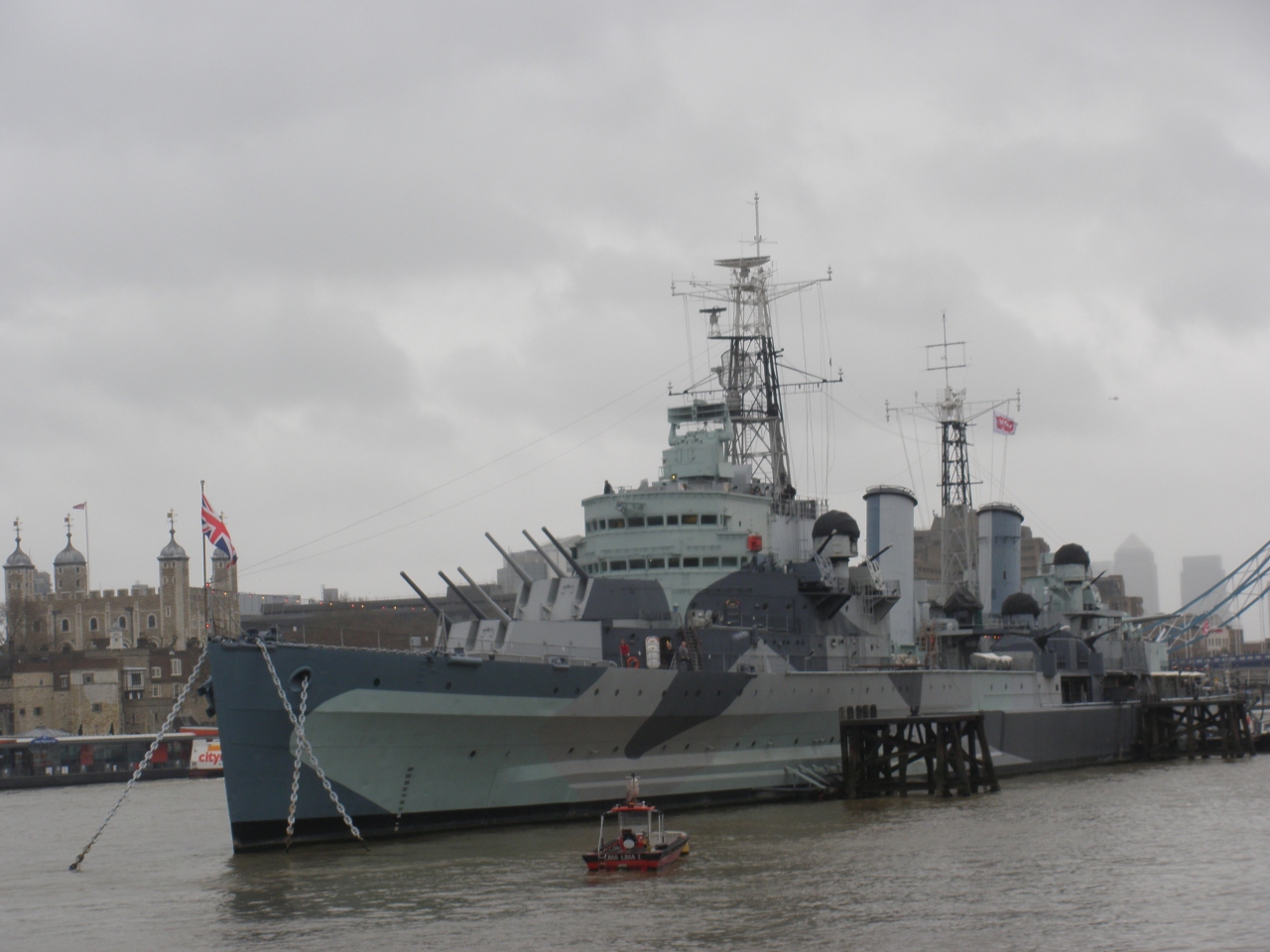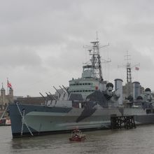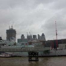 テムズ川沿いに散策している途中、ロンドン橋を超えてタワー・ブリッジ方面を見ると“HMSベルファスト号”が目に飛び込んできました。