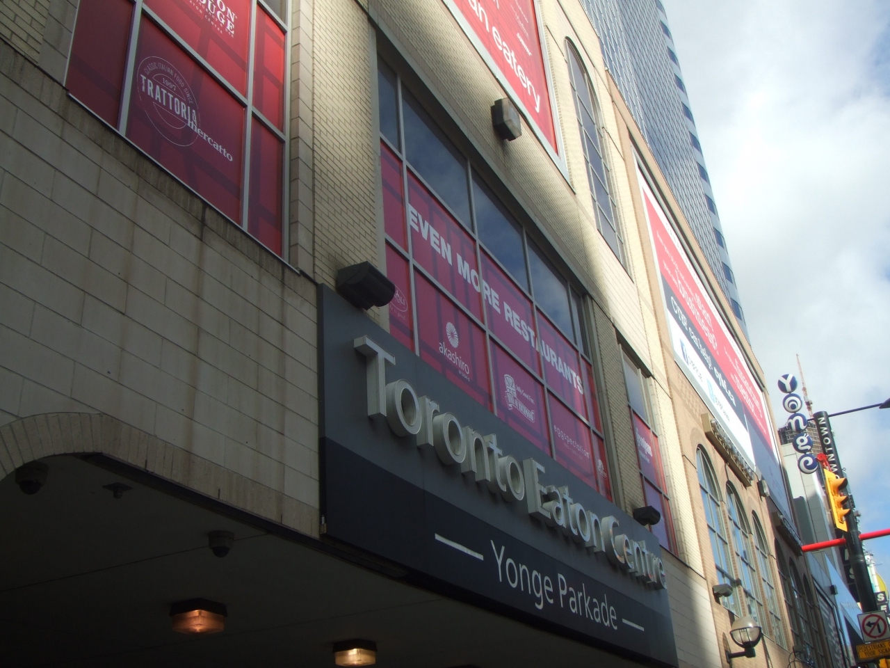トロント市内でも中心地の旧市庁舎隣に面したでっかいショッピングセンターです。なんといっても、クイーン駅からダンダス駅まで続いているのです。ショッピングセンターは、食品や衣類を販売すると頃であることはわかっていると思いますが、その店舗が300近くあるって、想像できますか。観光に訪れているものにとって、ちょこっと入ったら、長く入られません。迷子になります。トロントってすごいなーと思った一つです。