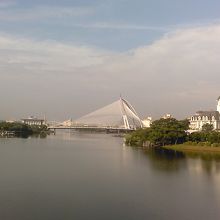 KLセントラルから、KLIAトランジェットでプトラジャヤ・サイバージャヤ駅下車です。政府機関を移しているだけあって、計画的に都市が整備されており、橋や首相官邸など、とてもきれいにつくらえており、街全体が新しく、きれいです。