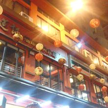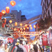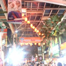 ここは、通りいっぱいに多くの店があり、とてもにぎやかです。