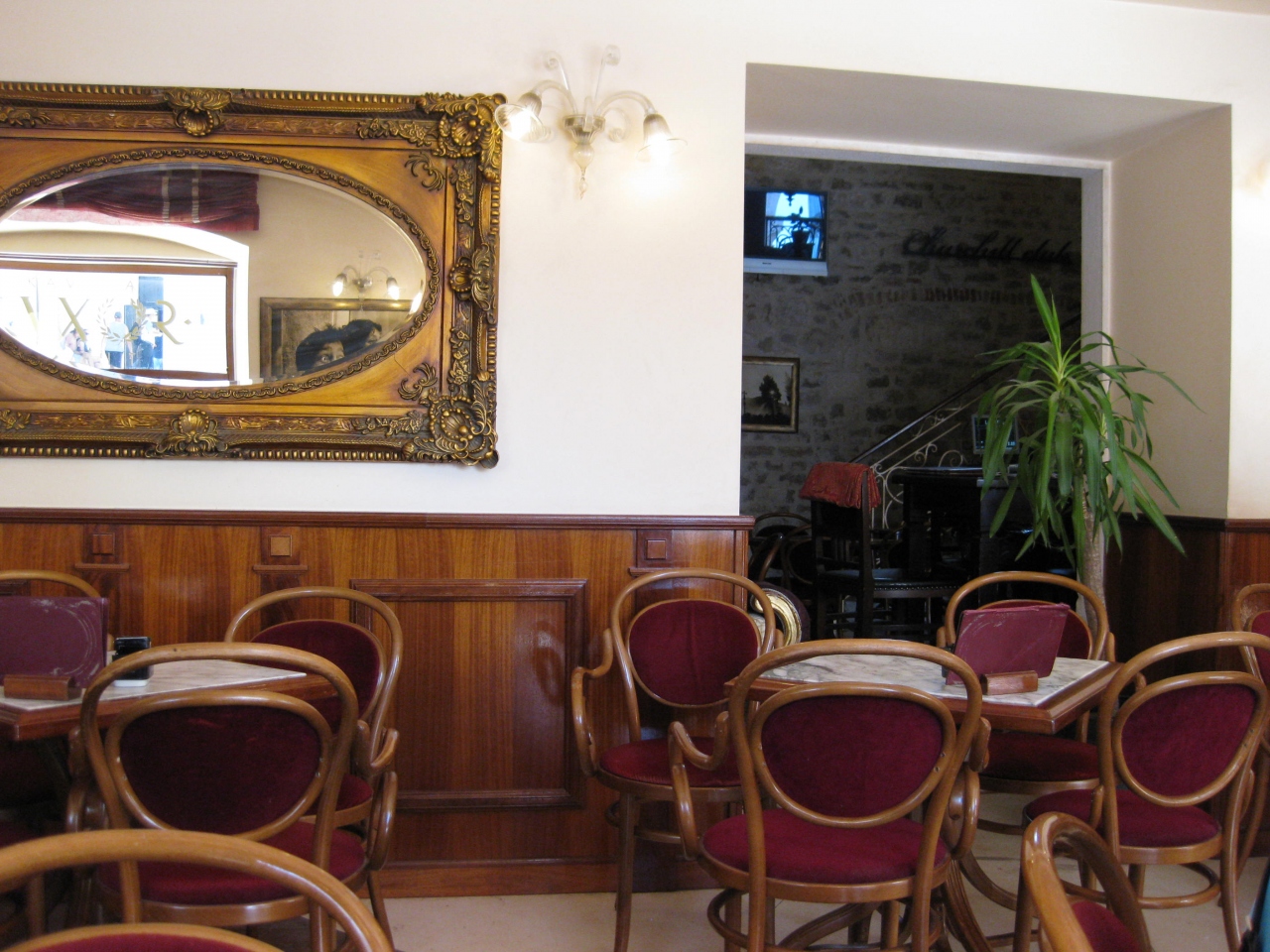 旧市街のペリスティル前にあり、前には鐘楼が見えるなど、立地は非常によいです。